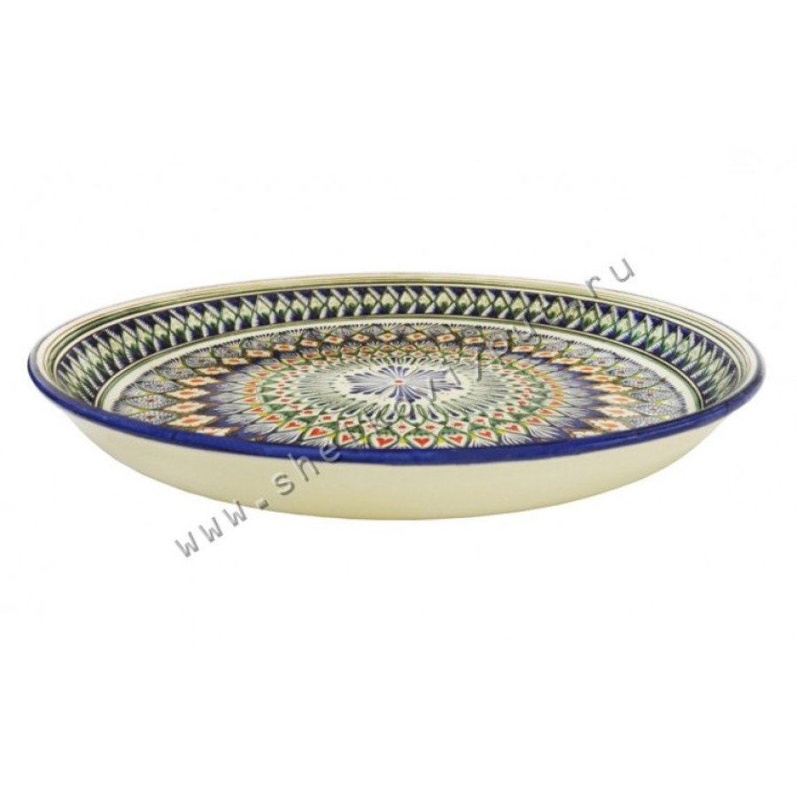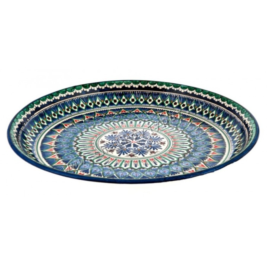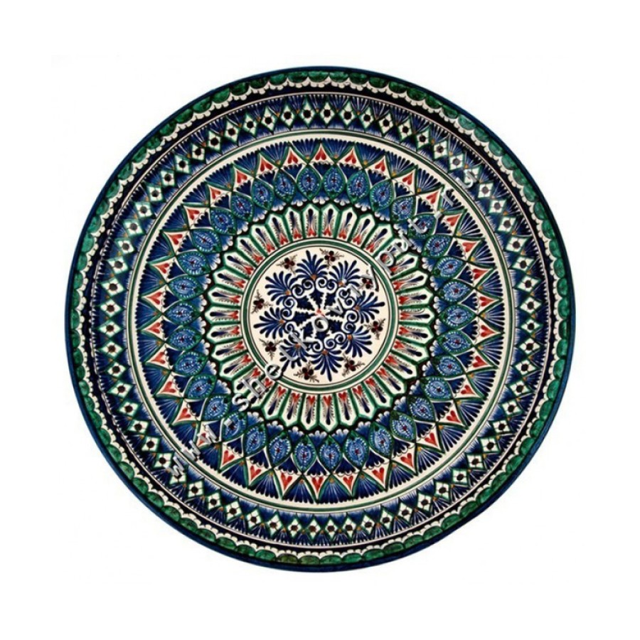 Platoul pentru pilaf prezentat este confecționat de maeștri uzbeci în stilul tradițiilor orientale străvechi care datează de mai bine de o mie de ani. Vasul este decorat în stil etnic, pictat manual, ceea ce face acest obiect să fie unic.