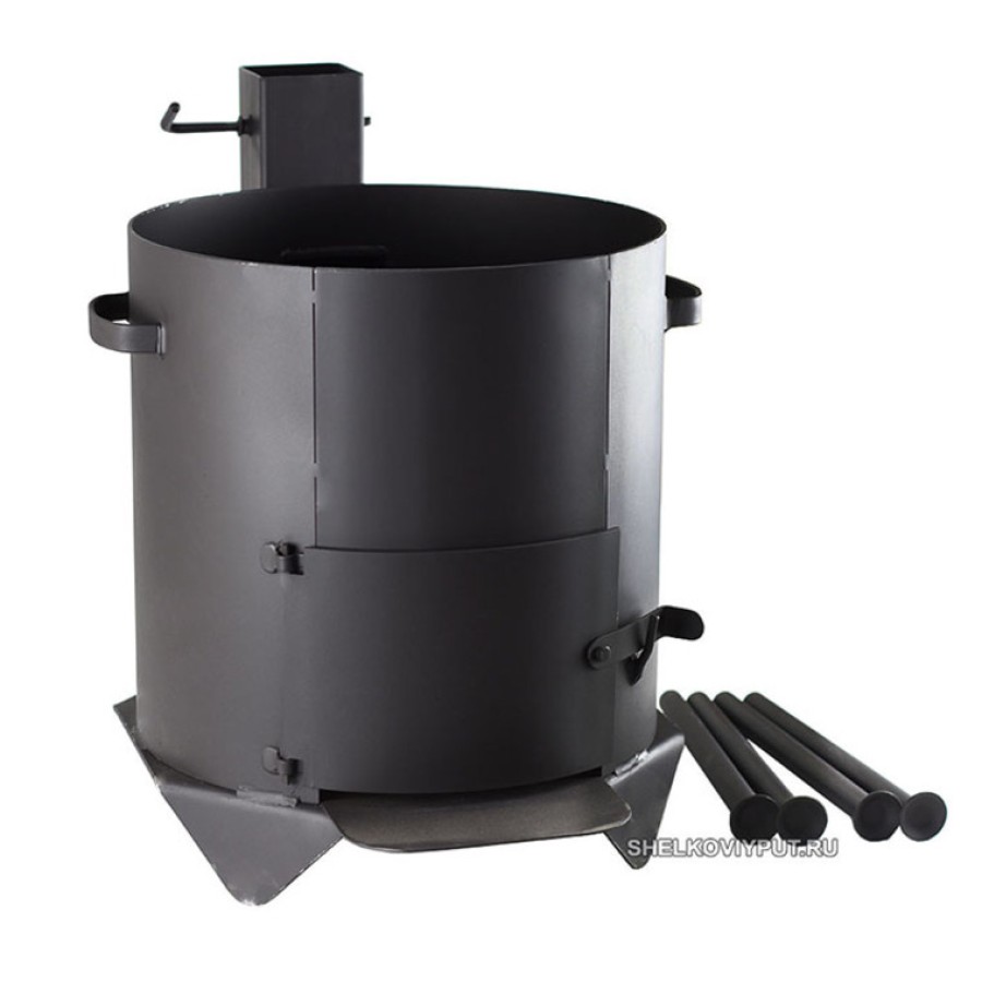 Soba este dotată cu ușă și coș de fum. Coșul de fum poate fi detașat, dacă este necesar pentru transportare;