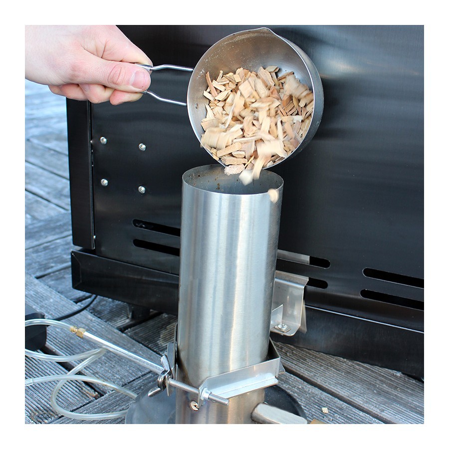 Pur și simplu umpleți cilindrul cu fumul la alegere. Conectați furtunul și puneți-l în interiorul grătarului. Furtunul ghidează fumul către mâncarea la grătar.