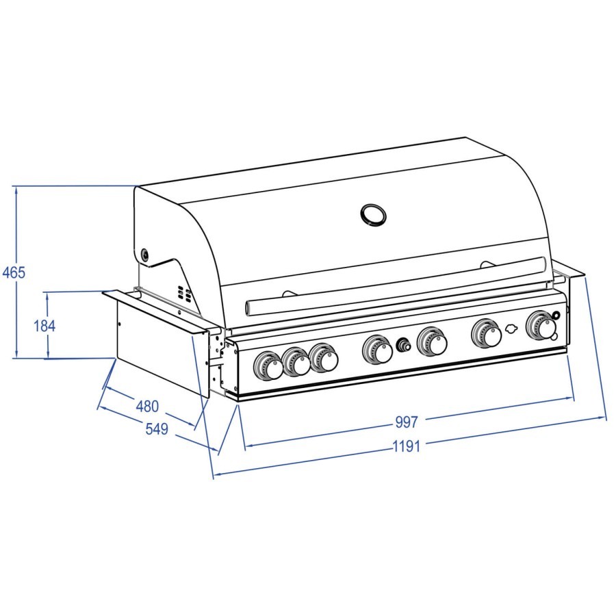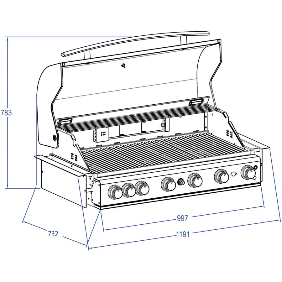 • Grătar cu gaz încorporat complet din oțel inoxidabil (430), fără substructură și raft lateral