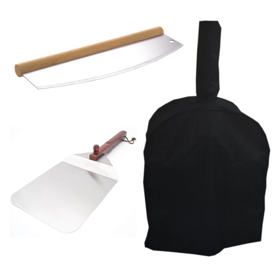 - Include husă rezistentă la intemperii, tăietor de pizza, lopată pentru pizza și carte pentru grătar
